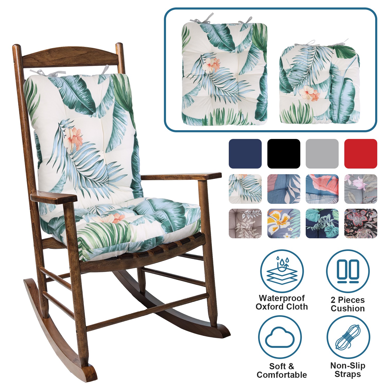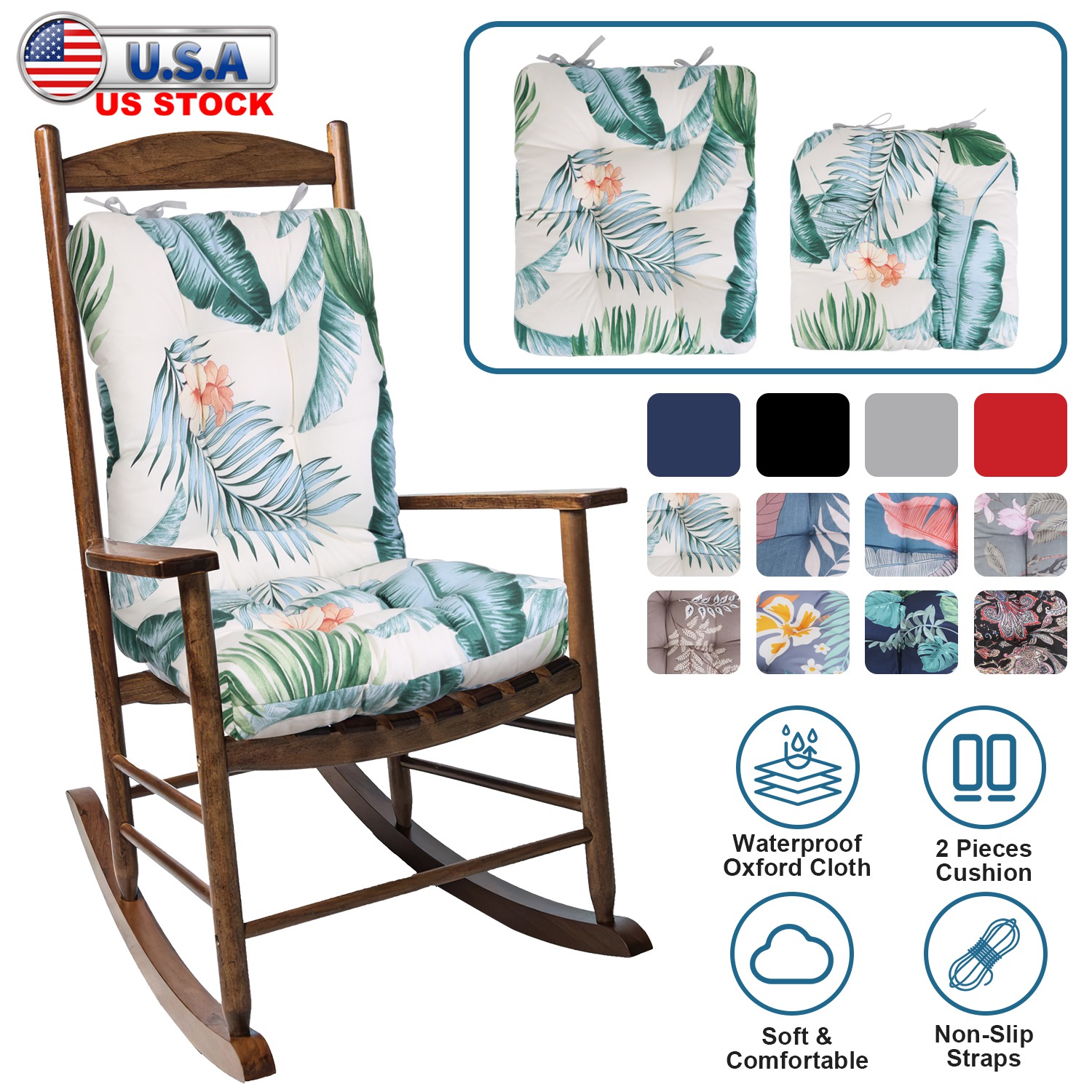 2Pcs Waterproof Rocking Chair Cushion Upper And Lower Back And Seat Sets with Non-Slip Ties Oxford Cloth Surface Polyester Filling Comfortable for Ind