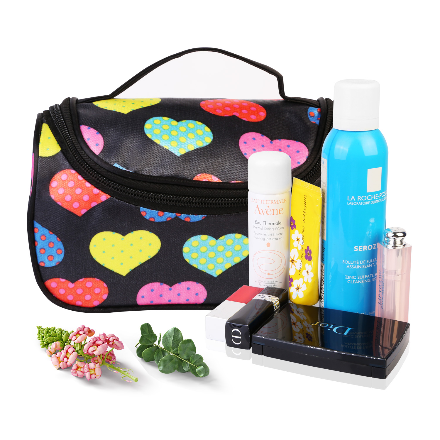 Store your travel necessities like cosmetics, makeup brushes, nail polishes, toiletries, or any other accessories in one portable lightweight bag, which can be carried on hand, tossed in travel bag/suitcase or slipped in your overhead storage compartment on bus or plane. Durable water-resistant fabric provides good protection for items inside even when the bag is accidentally spilled or scratched.