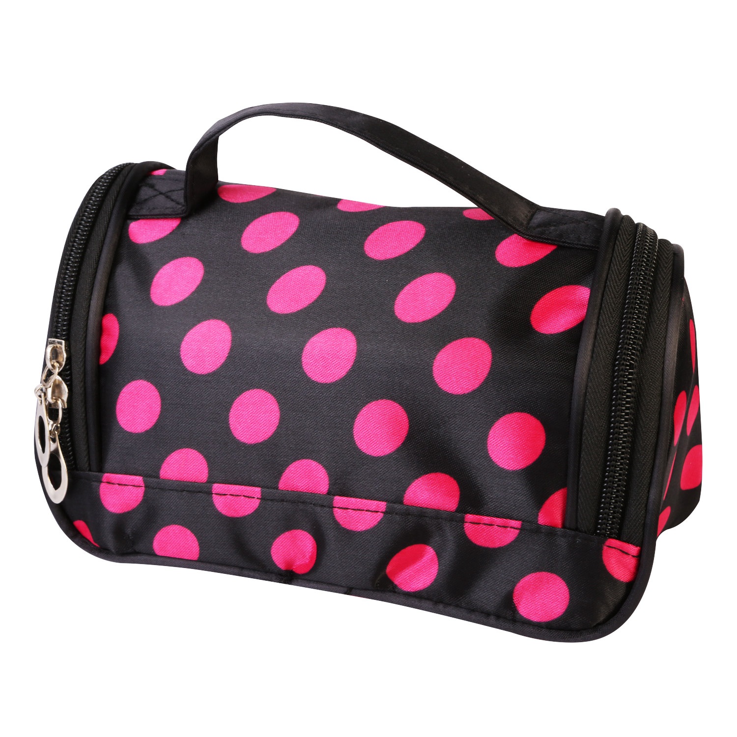 Store your travel necessities like cosmetics, makeup brushes, nail polishes, toiletries, or any other accessories in one portable lightweight bag, which can be carried on hand, tossed in travel bag/suitcase or slipped in your overhead storage compartment on bus or plane. Durable water-resistant fabric provides good protection for items inside even when the bag is accidentally spilled or scratched.