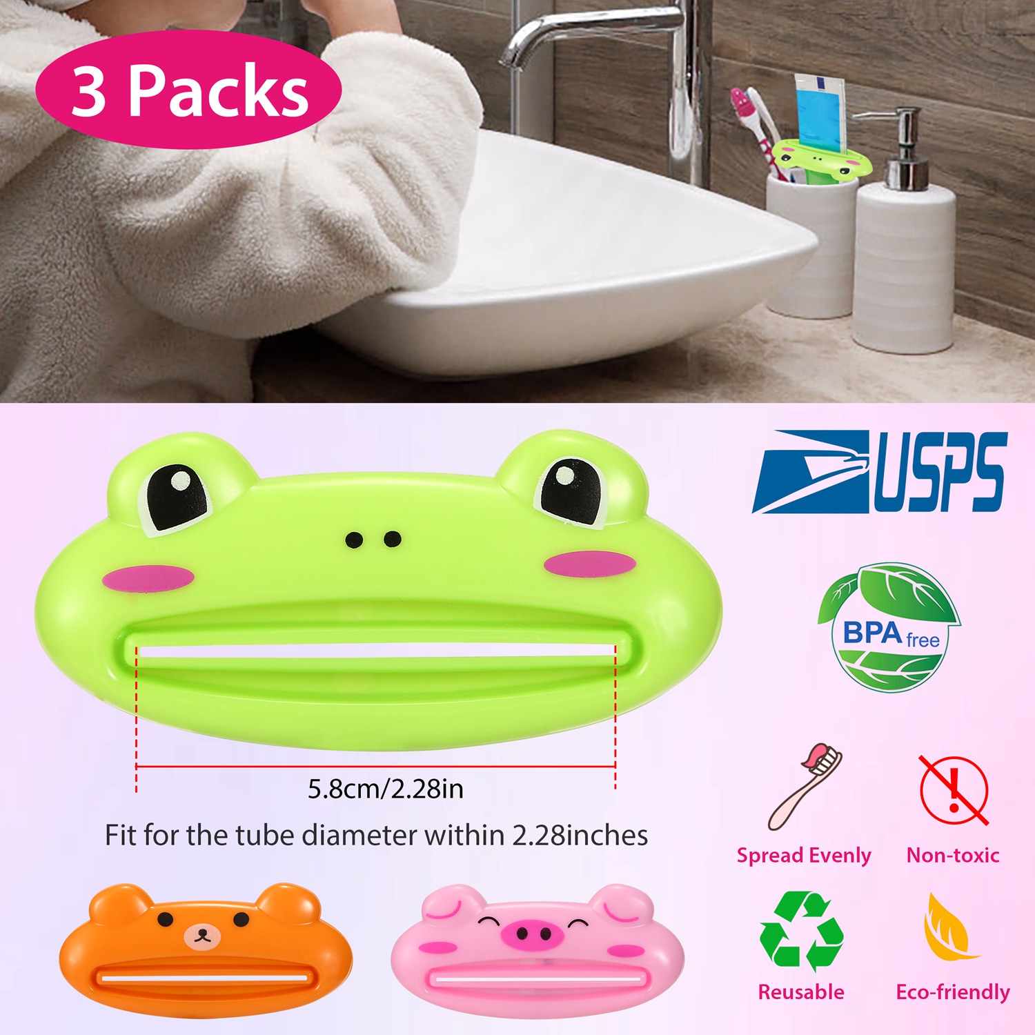 3Packs Toothpaste Dispenser Squeezer w/2.28in Squeeze Mouth Cream Lotions Tube Squeezer Animal Cartoon Toothpaste Clip