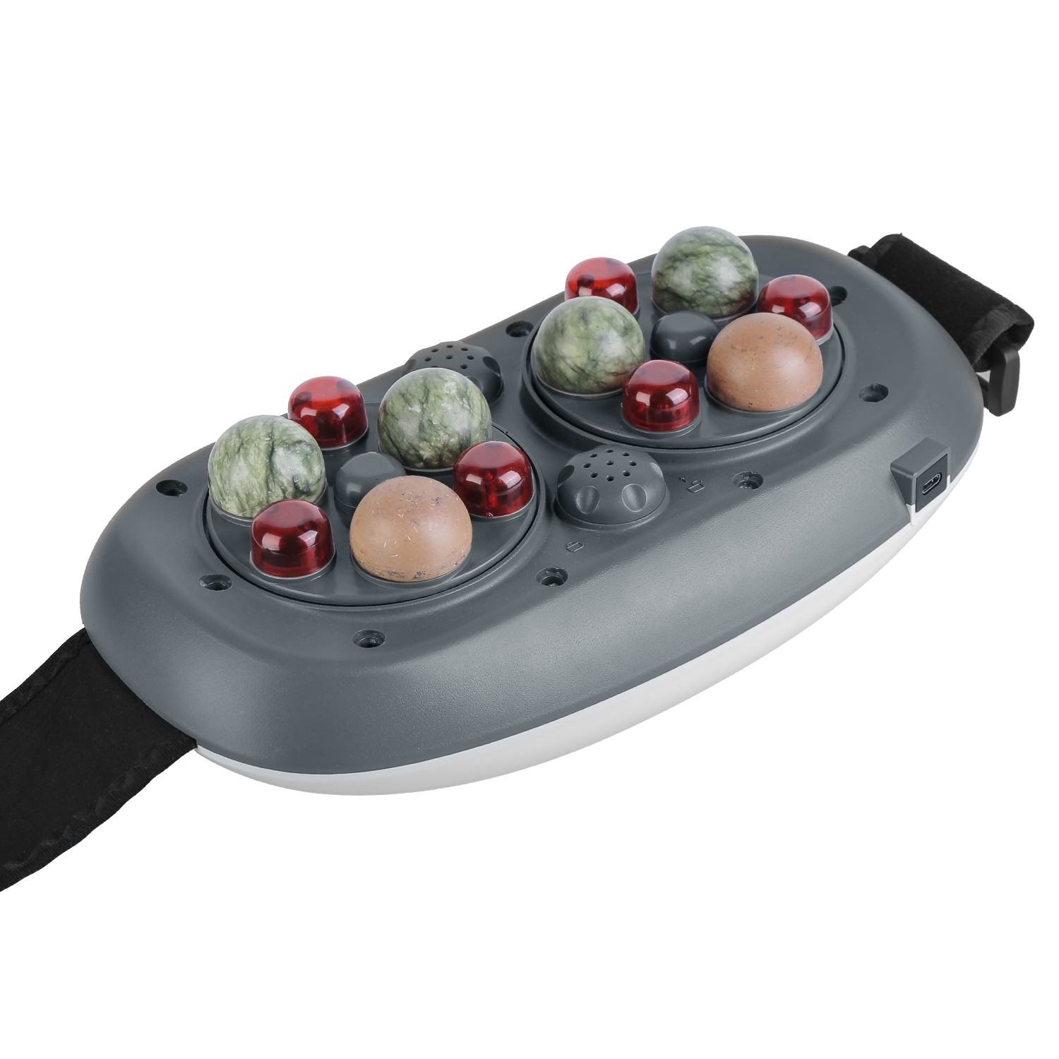 This professional deep kneading massager delivers ultimate relief for abdominal tension, bloating, indigestion, and menstrual discomfort. Featuring dual rotating heads equipped with 2 medical-grade Bian stones and 4 gemstones, plus 6 deep-penetrating red lights, it combines therapeutic warmth with powerful kneading to relax muscles, promote digestion, and enhance circulation. Enjoy personalized sessions with 5 massage modes, 3 speeds, 3 heat levels, and a timer. Its adjustable belt (20.87-33.86inches) ensures a comfortable, hands-free fit for most body types, while the long-lasting rechargeable battery provides up to 60 minutes of cordless relief—your natural solution for soothing back, neck, abdominal, and thigh discomfort anytime. Find your comfort today!