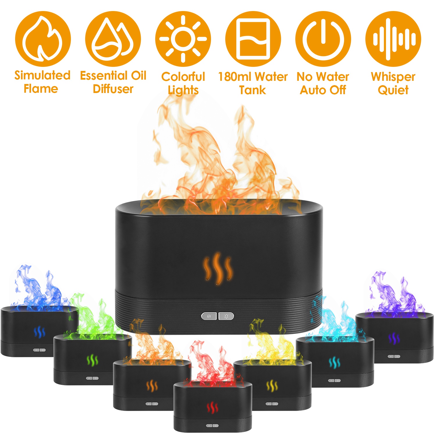 Home > 3D Flame Air Humidifier Essential Oil Ultrasonic Aroma Diffuser Bedroom Mist Home Spa Yoga Office Relax Colorful Lights with No Water Auto off Protect