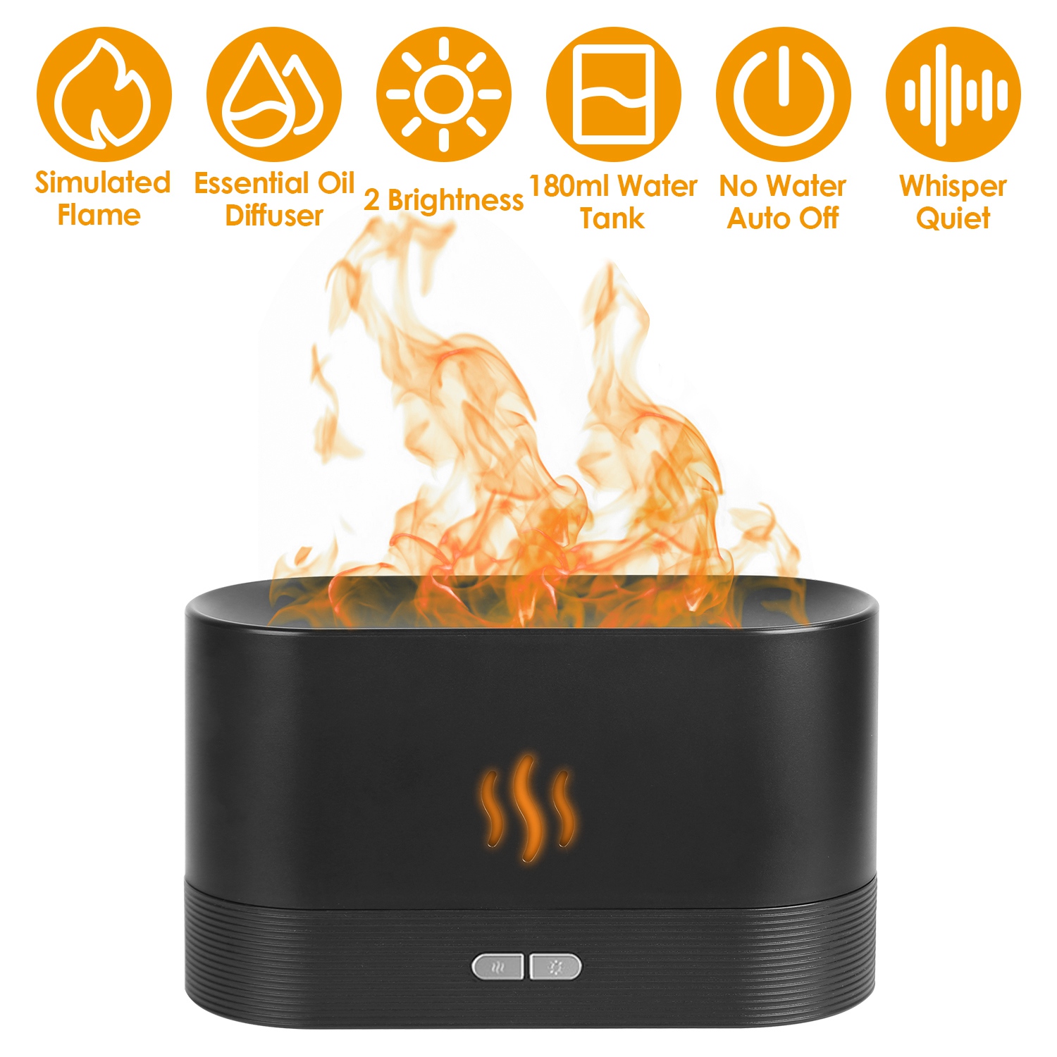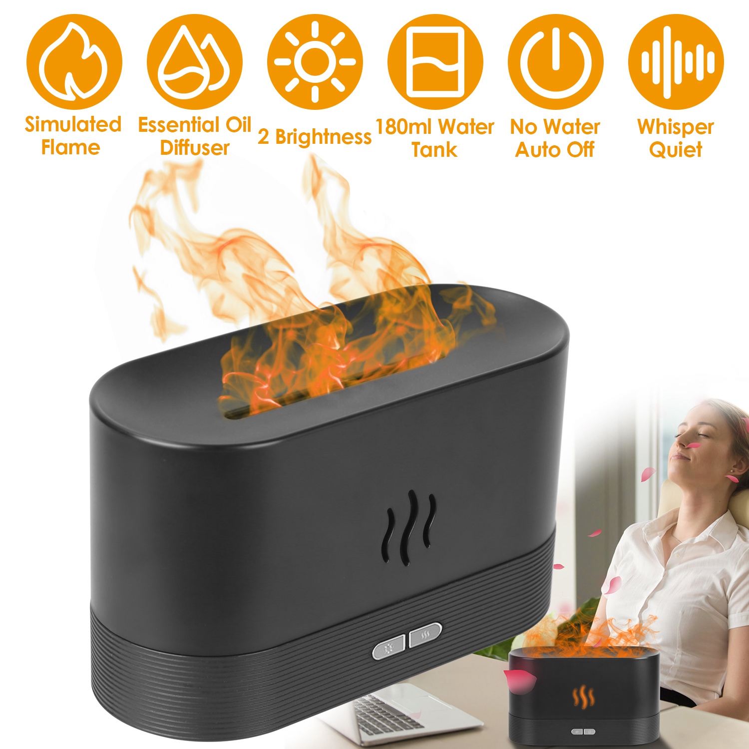 Home > 3D Flame Air Humidifier Essential Oil Ultrasonic Aroma Diffuser Bedroom Mist Home Spa Yoga Office Relax 2 Brightness with No Water Auto off Protection