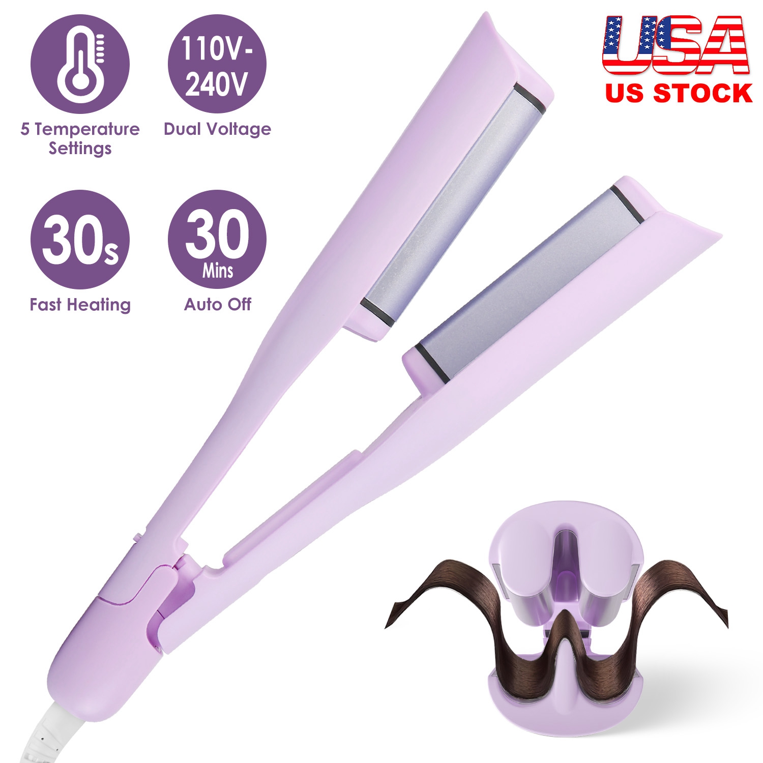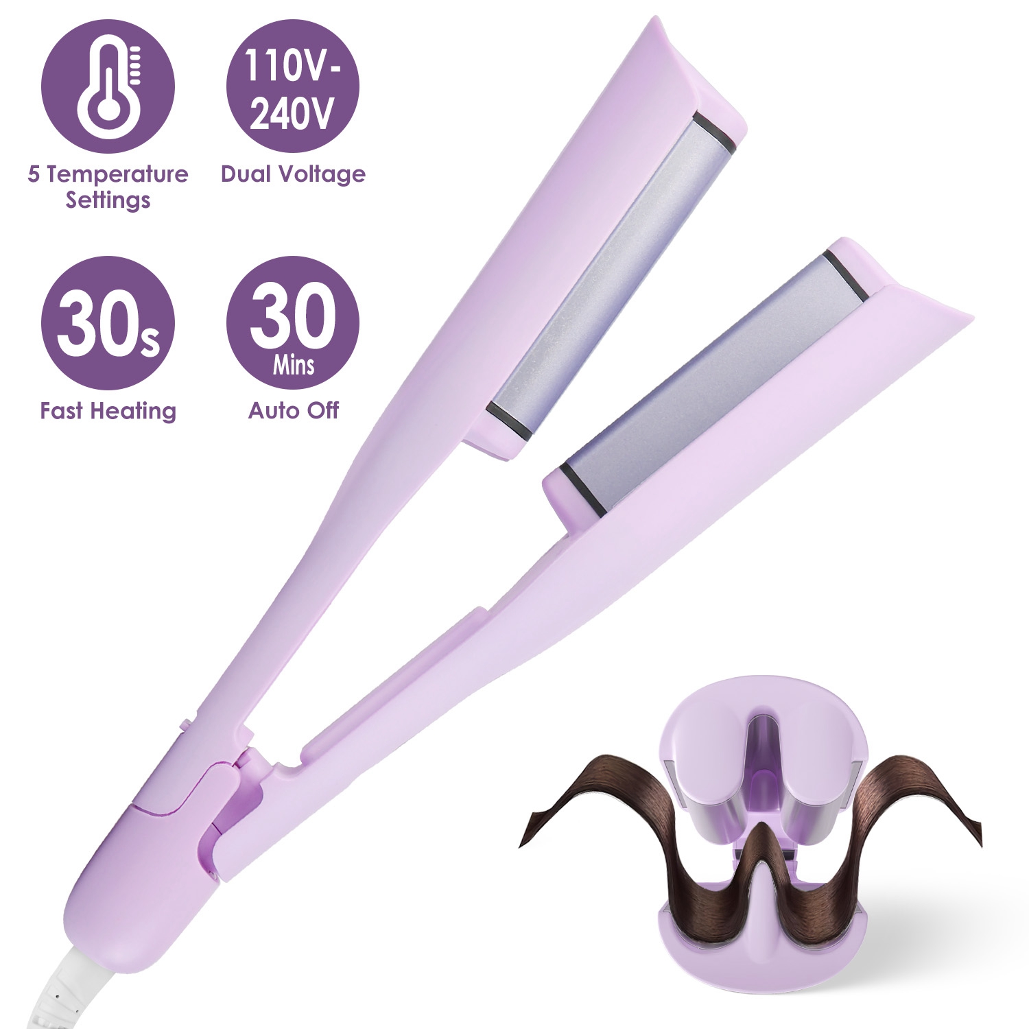 With a simple clamp and release, creating beautiful, uniform curls with precision and efficiency. Equipped with dual heating barrels and 1.41-inch wider plates, our curling waver ensures even heat distribution for long-lasting styling results. 30S fast heating powered by PTC heating elements guarantees quick and consistent heat output. Ceramic coating of our hair crimper releases 10 million negative ions to neutralize static and minimize hair damage, resulting in smooth, shiny, and bouncy curls. A must-have tool for achieving gorgeous curls without skills or practices.