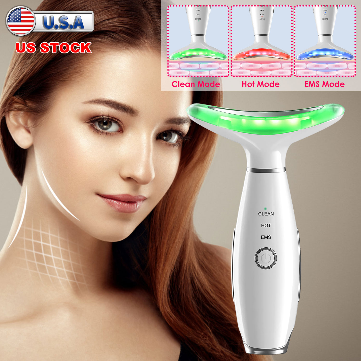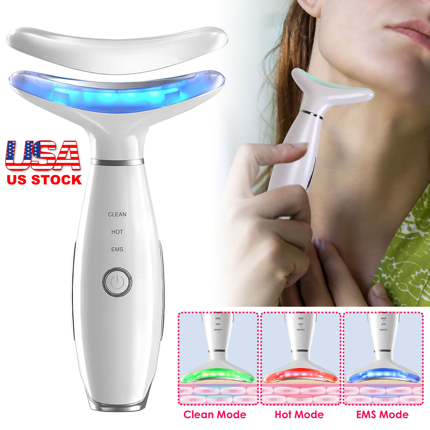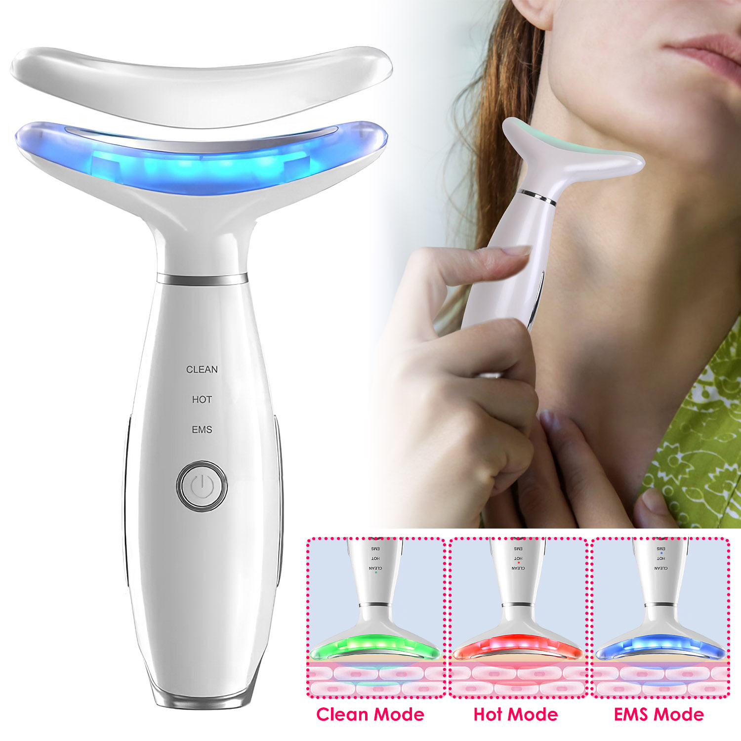 Home > Anti Wrinkles Face Neck Massager Double Chin Reducer Face Neck Beauty Device Skin Care Tools with 3 Modes LED Vibration Heat EMS for Skin Care Tighten