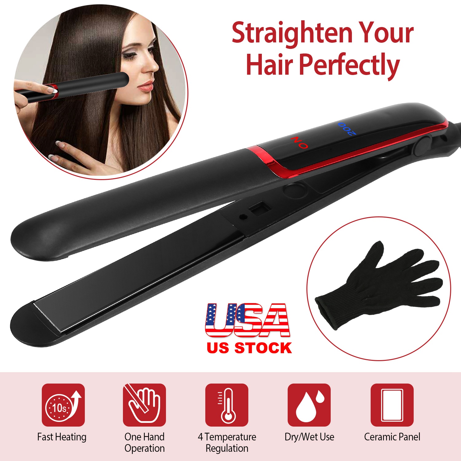 Hair Straightener Curling Iron 2 In 1 Twist Hair Straightener Ceramic Plate Hair Curler w/ Temperature Adjust LCD Display Glove