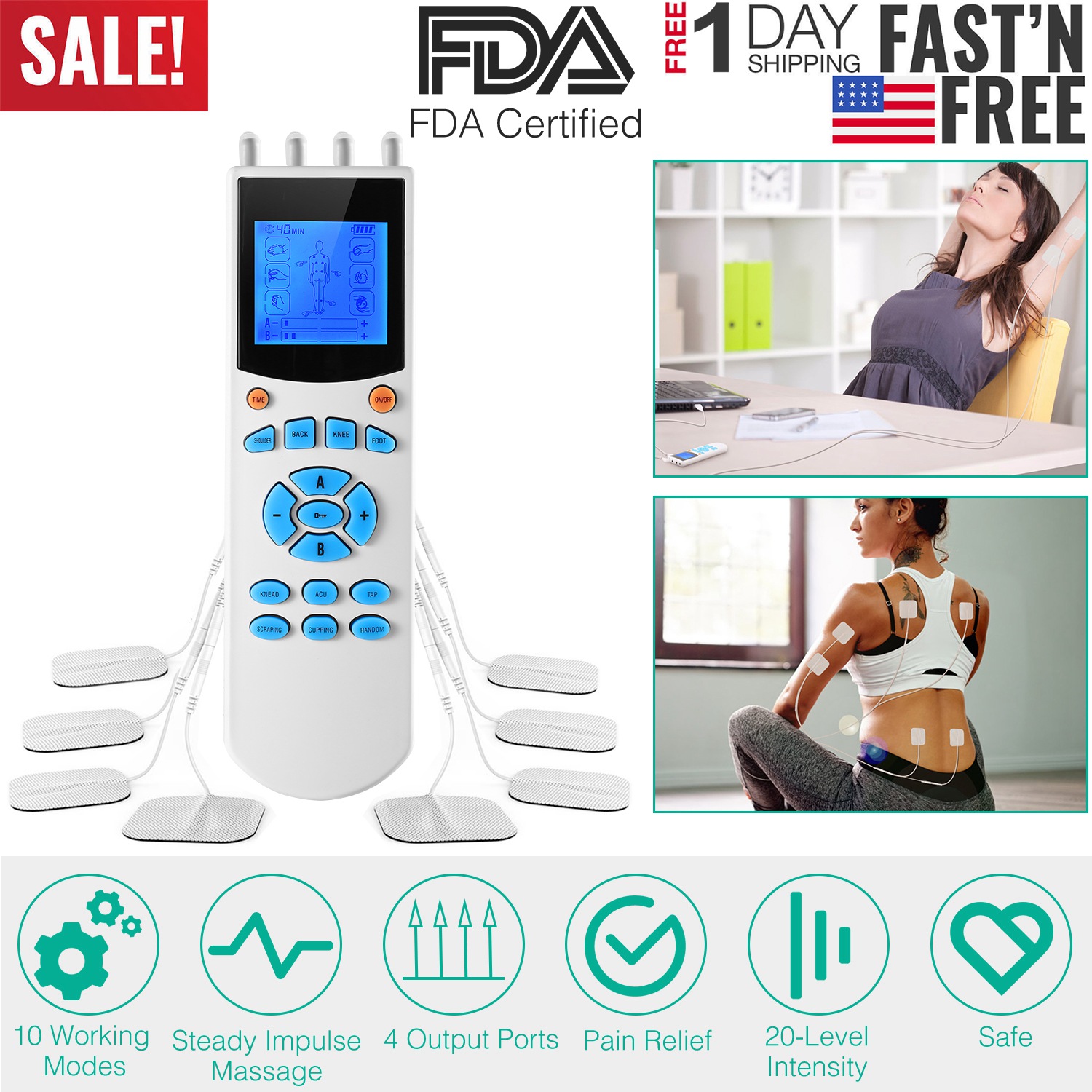 Tens Unit Machine Impulse Massager 10 Modes Pain Relief Body Massager Machine Muscle Stimulator w/ 4 Outputs and 8 Electrode Pads For Relief Relaxing Tens Unit Machine Impulse Massager 10 Modes Pain Relief Body Massager Machine Muscle Stimulator w/ 4 Outputs and 8 Electrode Pads For Relief Relaxing Tens Unit Machine Impulse Massager 10 Modes Pain Relief Body Massager Machine Muscle Stimulator w/ 4 Outputs and 8 Electrode Pads For Relief Relaxing Tens Unit Machine Impulse Massager 10 Modes Pain Relief Body Massager Machine Muscle Stimulator w/ 4 Outputs and 8 Electrode Pads For Relief Relaxing Tens Unit Machine Impulse Massager 10 Modes Pain Relief Body Massager Machine Muscle Stimulator w/ 4 Outputs and 8 Electrode Pads For Relief Relaxing