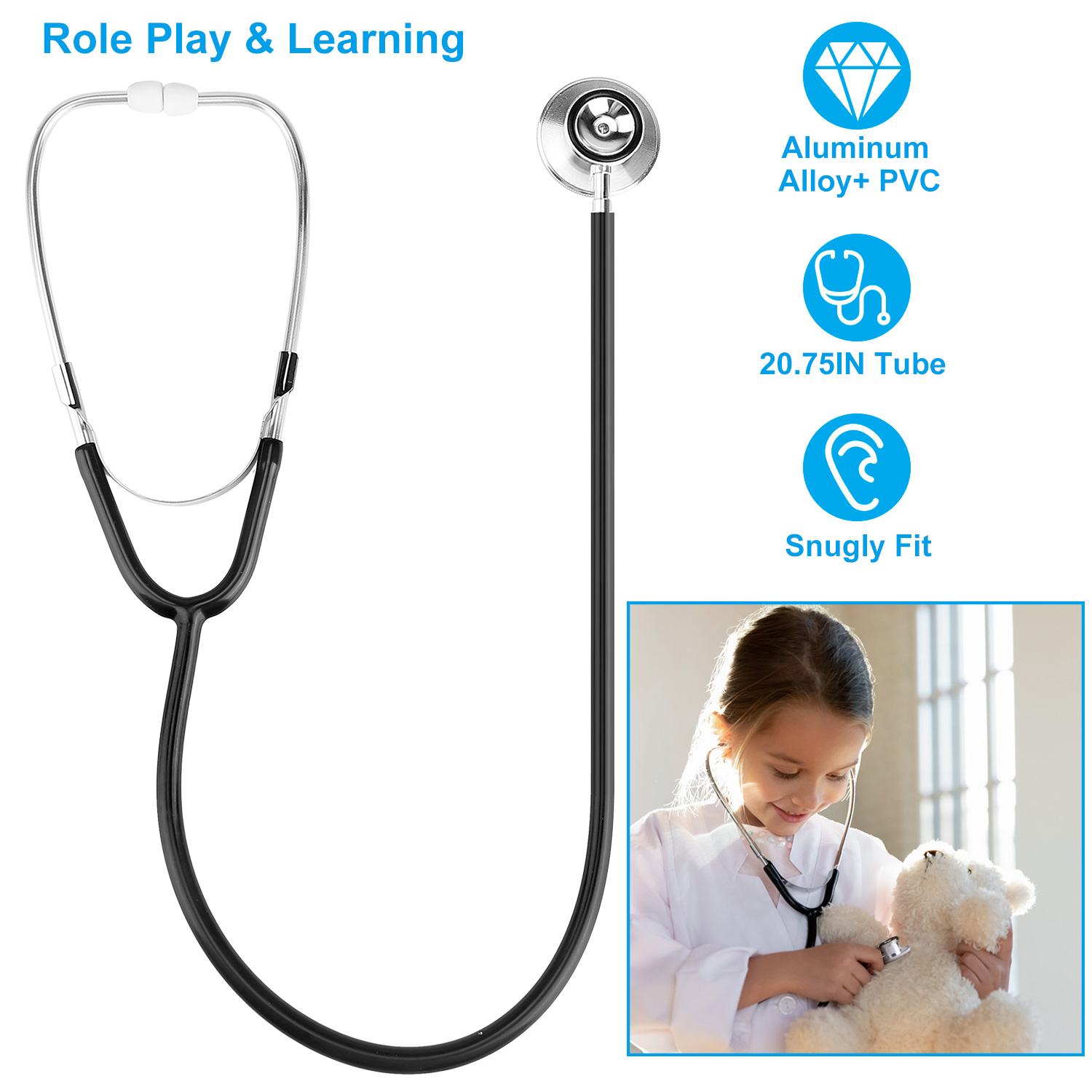 Ease of use and sturdy makes this the perfect solution for health care monitoring at home. Snugly fit earbud, 20.75in tube and solidly constructed chest piece, children and adults alike will enjoy their play experience more by taking actual readings and measurements for added realism.