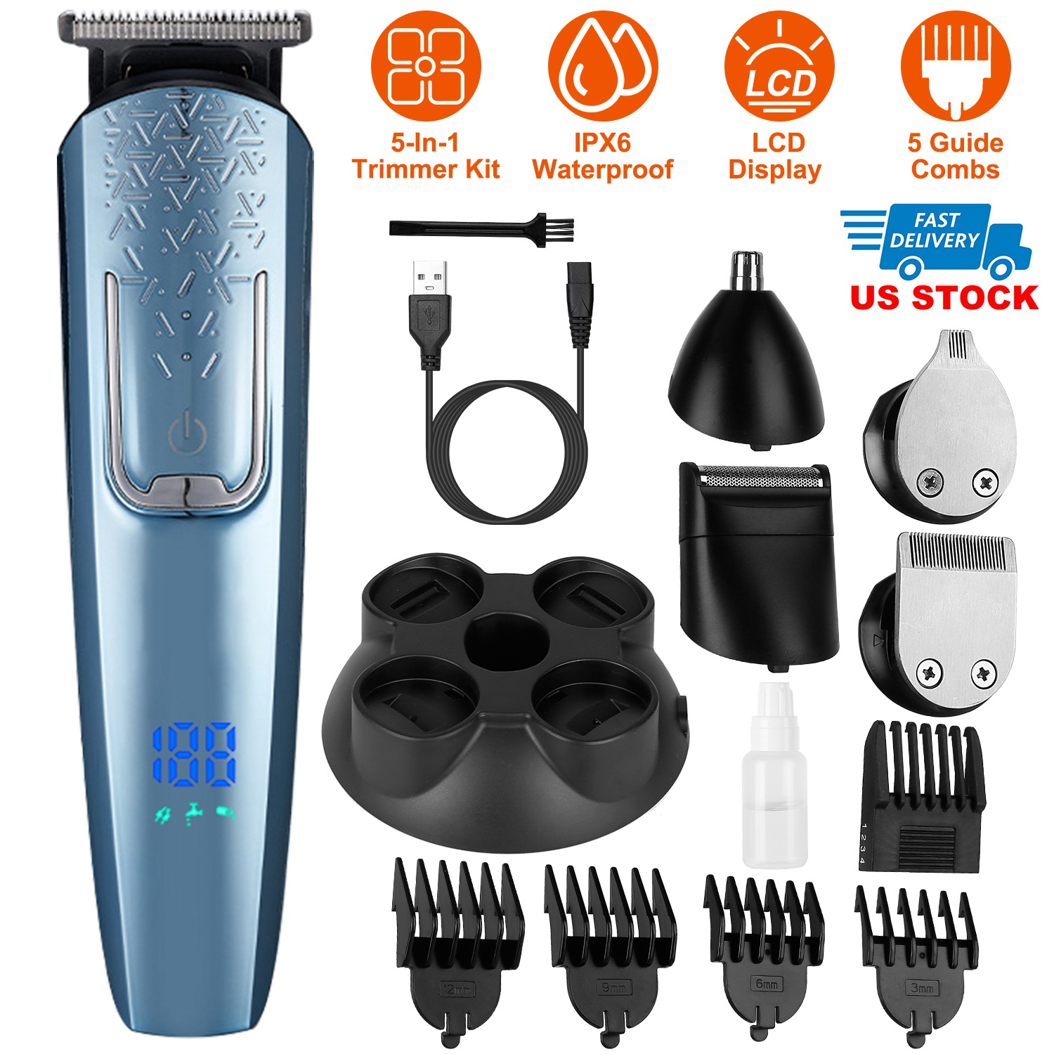 5-In-1 Men’s Beard Trimmer Cordless Hair Clipper Electric Waterproof Shaver Grooming Kit w/ LED Display for Nose Ear Facial Hair