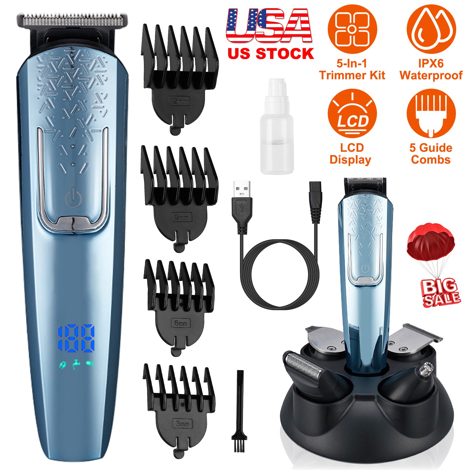 Home > 5-In-1 Men’s Beard Trimmer Cordless Hair Clipper Electric Waterproof Shaver Grooming Kit w/ LED Display for Nose Ear Facial Hair