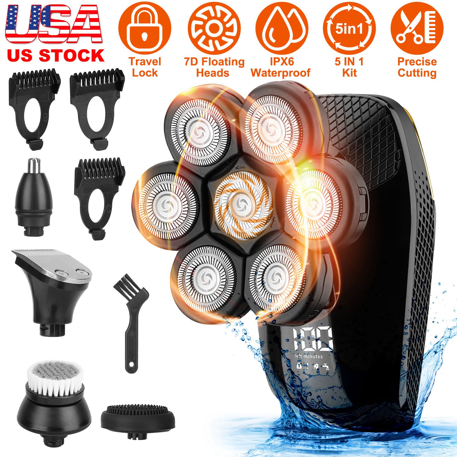 5 In 1 Electric Rotary Razor for Bald Men Rechargeable Cordless Head Beard Trimmer Shaver Kit IPX6 Waterproof Dry Wet Grooming Kit with 3 Combs