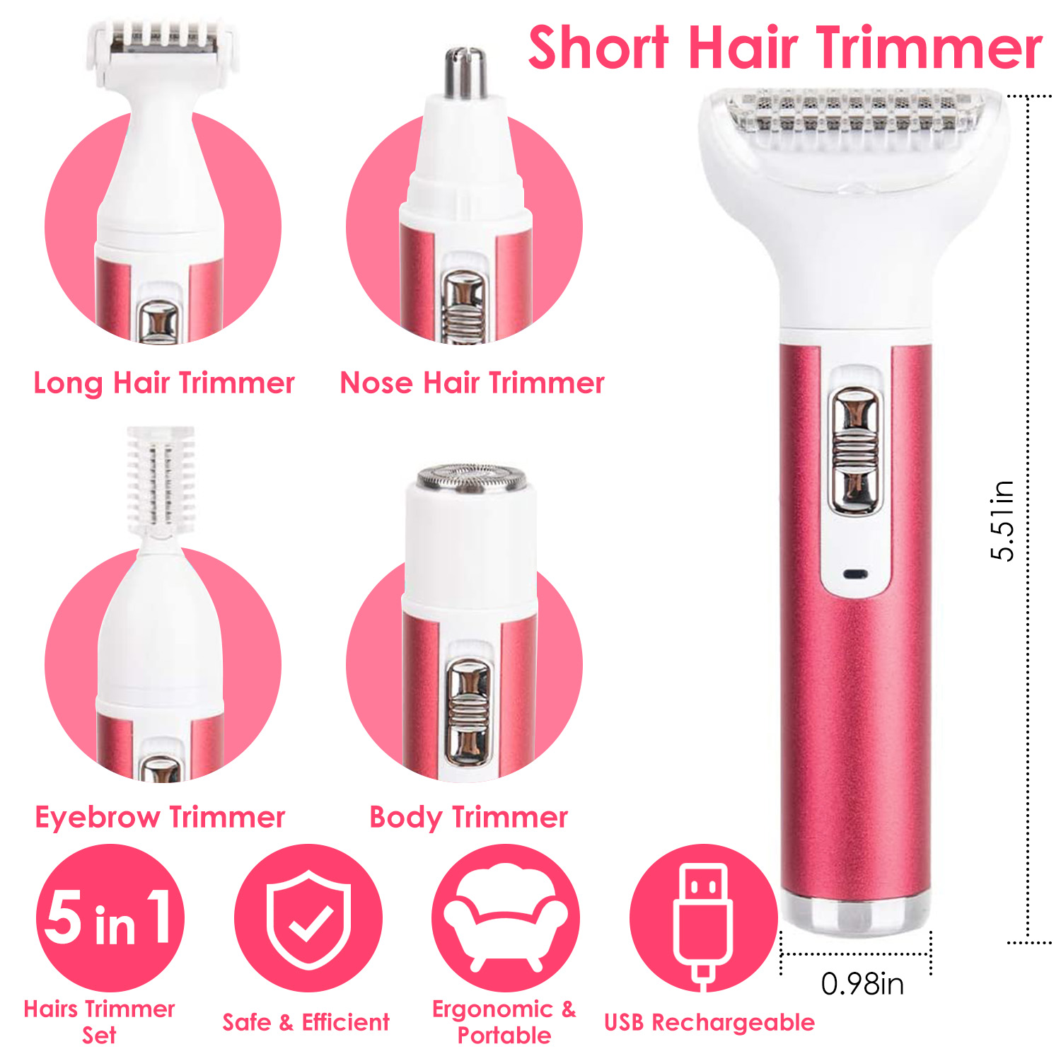 Home > 5 In 1 Lady Electric Razor Painless Hair Removal Eyebrow Nose Cordless Shaver Set Rechargeable Hair Exfoliation For Bikini Line Arm Leg
