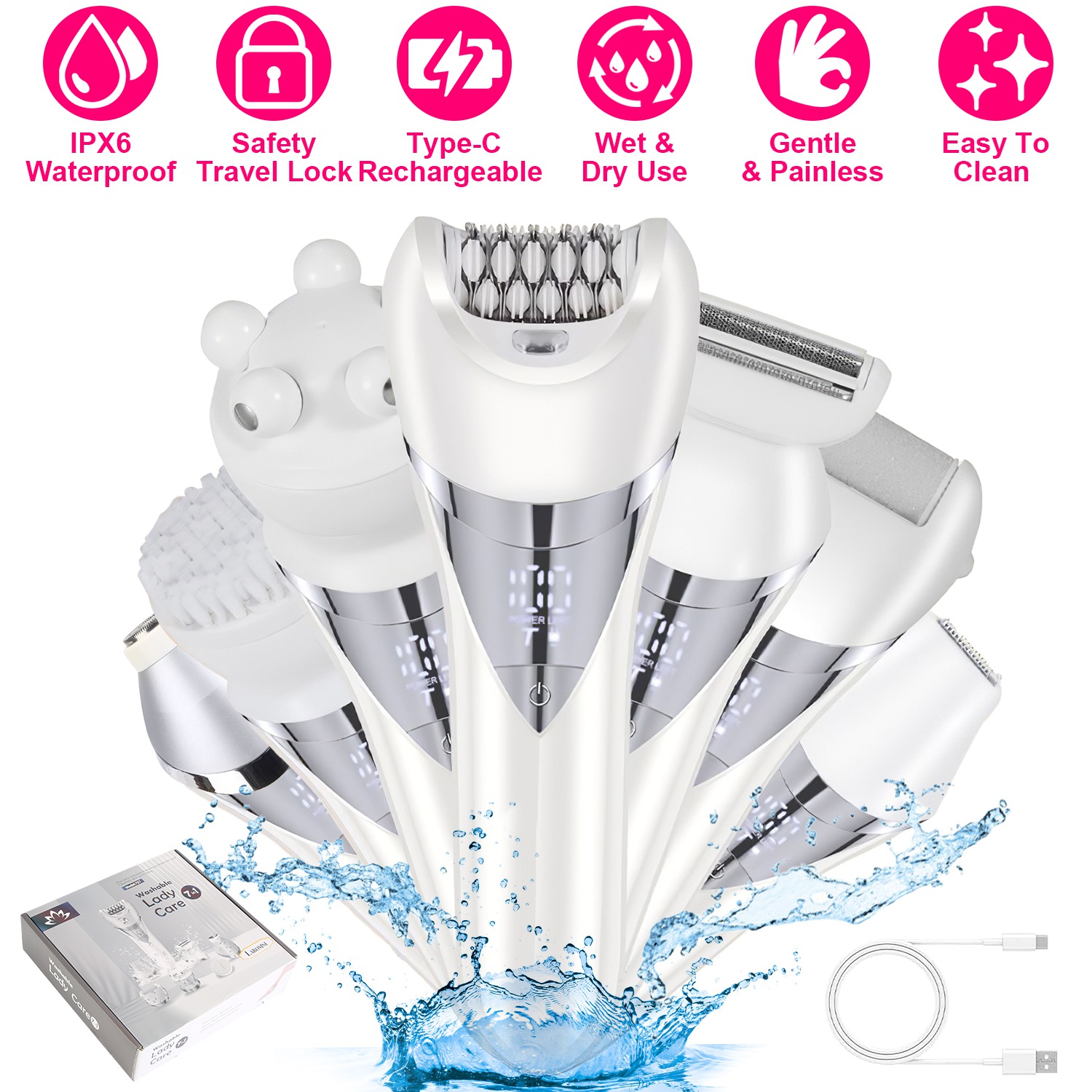 Home > 7 In 1 Electric Razor for Women Lady Hair Removal Epilators for Leg Face Arm Bikini Armpit Public Hairs IPX6 Wet and Dry Use Cordless Rechargeable Who