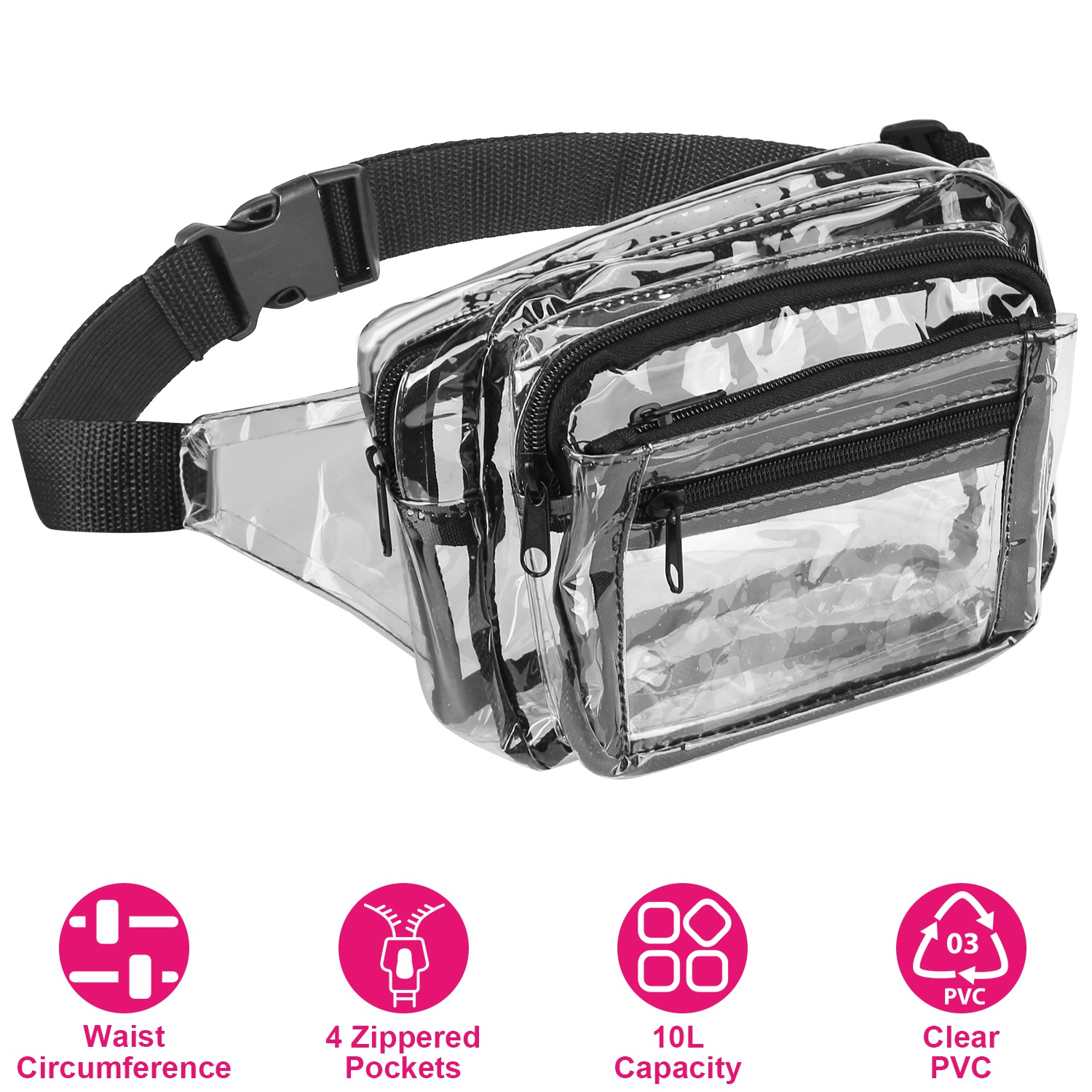 Home > Clear Fanny Pack Unisex Transparent Waist Pouch Belt Bag Clear Purse Chest Bag for Outdoor Sport Travel Beach Concerts Travel 23.42in-32.67in Waist Ci