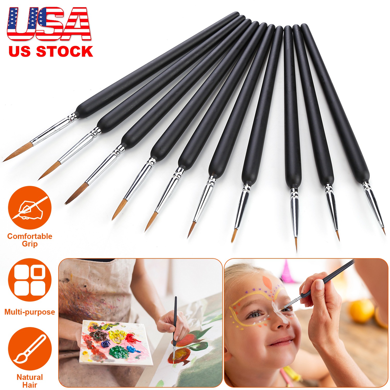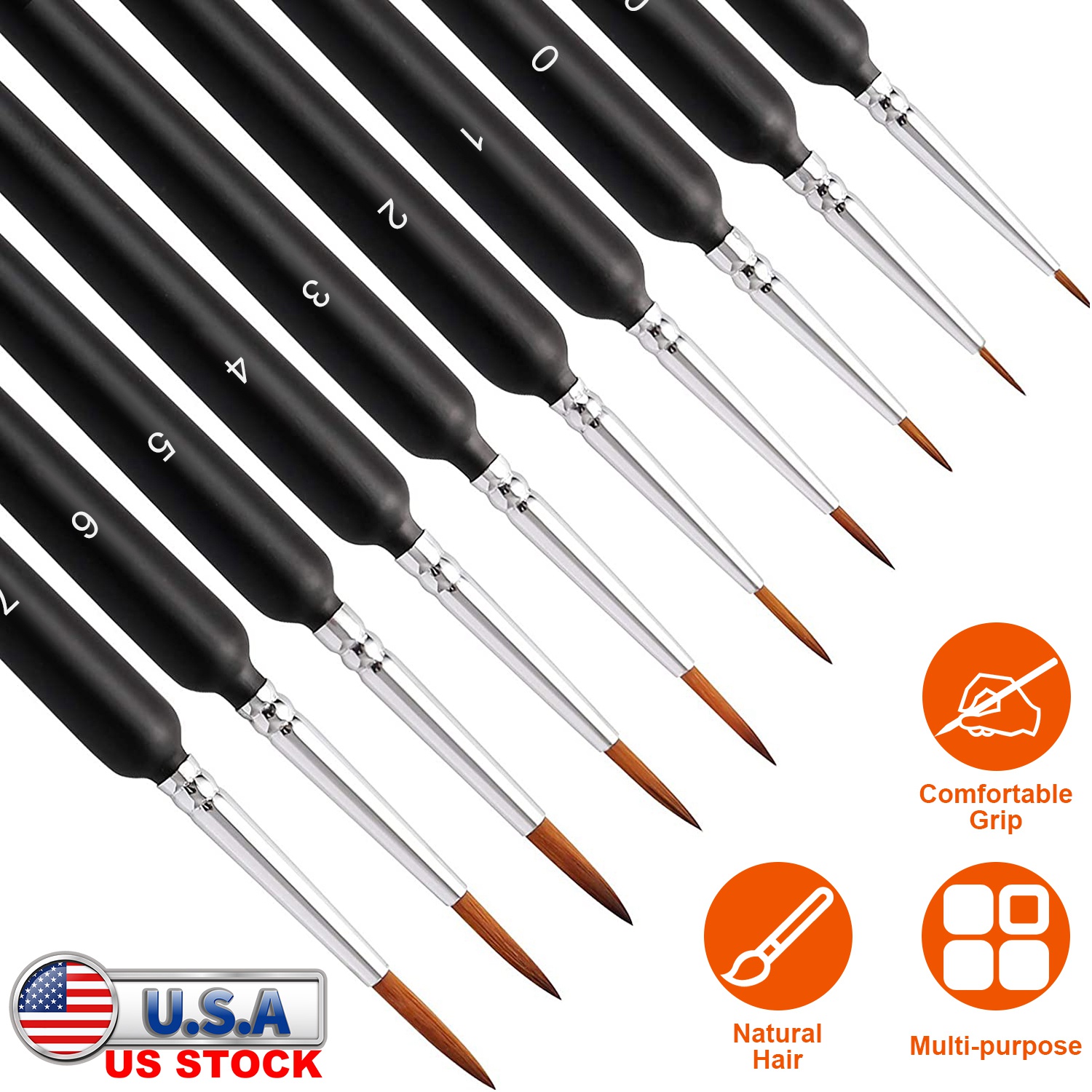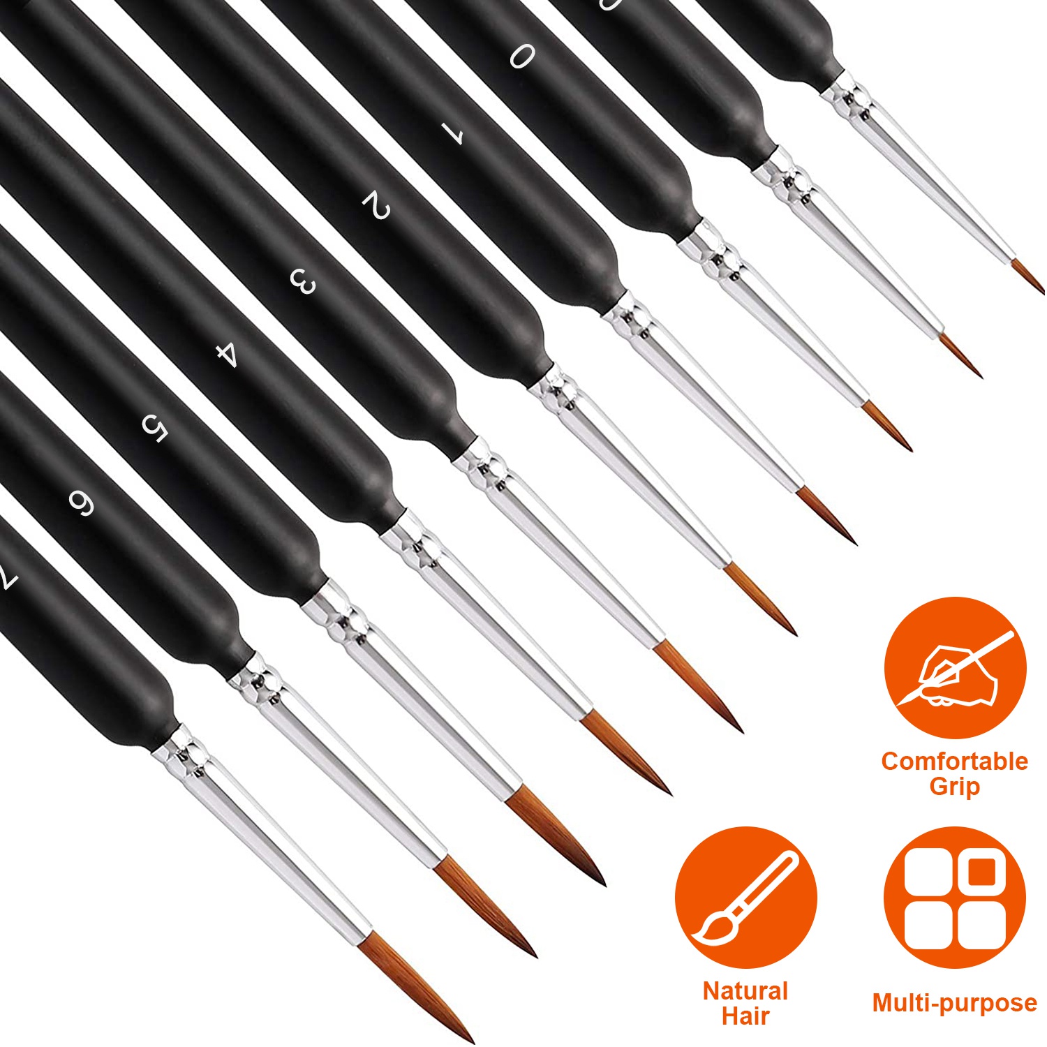 This set of detailing brushes offer the perfect small paint brush for each phase of all your artistic painting projects. Each package contains 10pcs brushes (SIZE:000,00,0,1,2,3,4,5,6,7) to ensure that you always have just the right paint brush for the job. Suitable for oil, acrylic, watercolor, art painting, face painting, miniatures, detailing, craft art painting, model, etc.