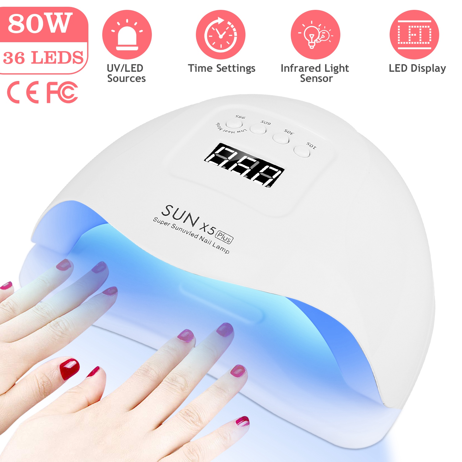 Home > 80W UV LED Nail Lamp Gel Polish Nail Dryer 36LEDs Fingernail Toenail Gel Curing Machine PIR Sensor Timer Display for Home Nail Salon