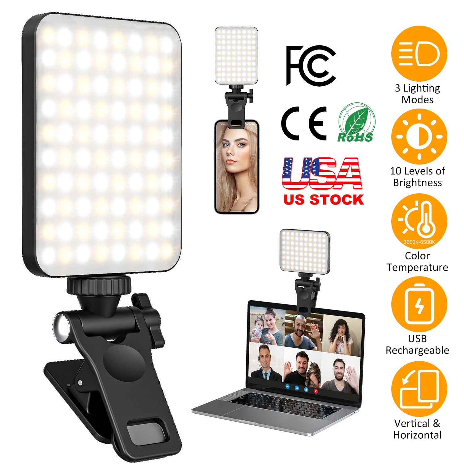Home > Rechargeable Selfie Light Fill Light 2000mAh Portable Clip On Light with 3 Light Modes 10 Brightness Levels for Phone Laptop Live Stream Make up Photo